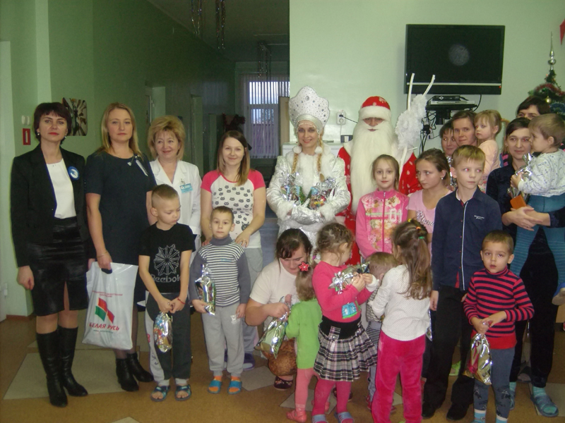 27 и 28 декабря Каменецкой районной организацией общественного объединения «Белорусский союз женщин», совместно Каменецким районным объединением РОО «Белая Русь» 36 детям, находящимся в детских и инфекционных отделениях больниц г.Каменца и г.Высокое, на утренниках были вручены новогодние подарки на сумму 180 рублей.