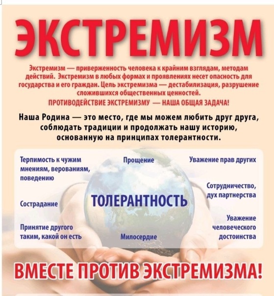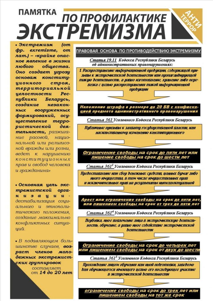 В современном мире экстремизм уже стал рассматриваться как феномен современной социальной реальности. В самом общем смысле экстремизм – это взгляды и действия нетерпимого, не толерантного характера вплоть до применения насилия по отношению к приверженцам иных взглядов. В настоящее время в Республике Беларусь участились случаи выявления фактов изготовления и распространения информационной продукции, имеющей признаки различного рода экстремистских проявлений.
